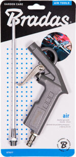 Στιβαρό πιστόλι αέρα ξεσκονίσματος με μακρύ ακροφύσιο 200mm. Εξοπλισμένο με τυπικό βύσμα για γρήγορη συνδέση. Κατασκευασμένο από υψηλής ποιότητας κράμα αλουμινίου.